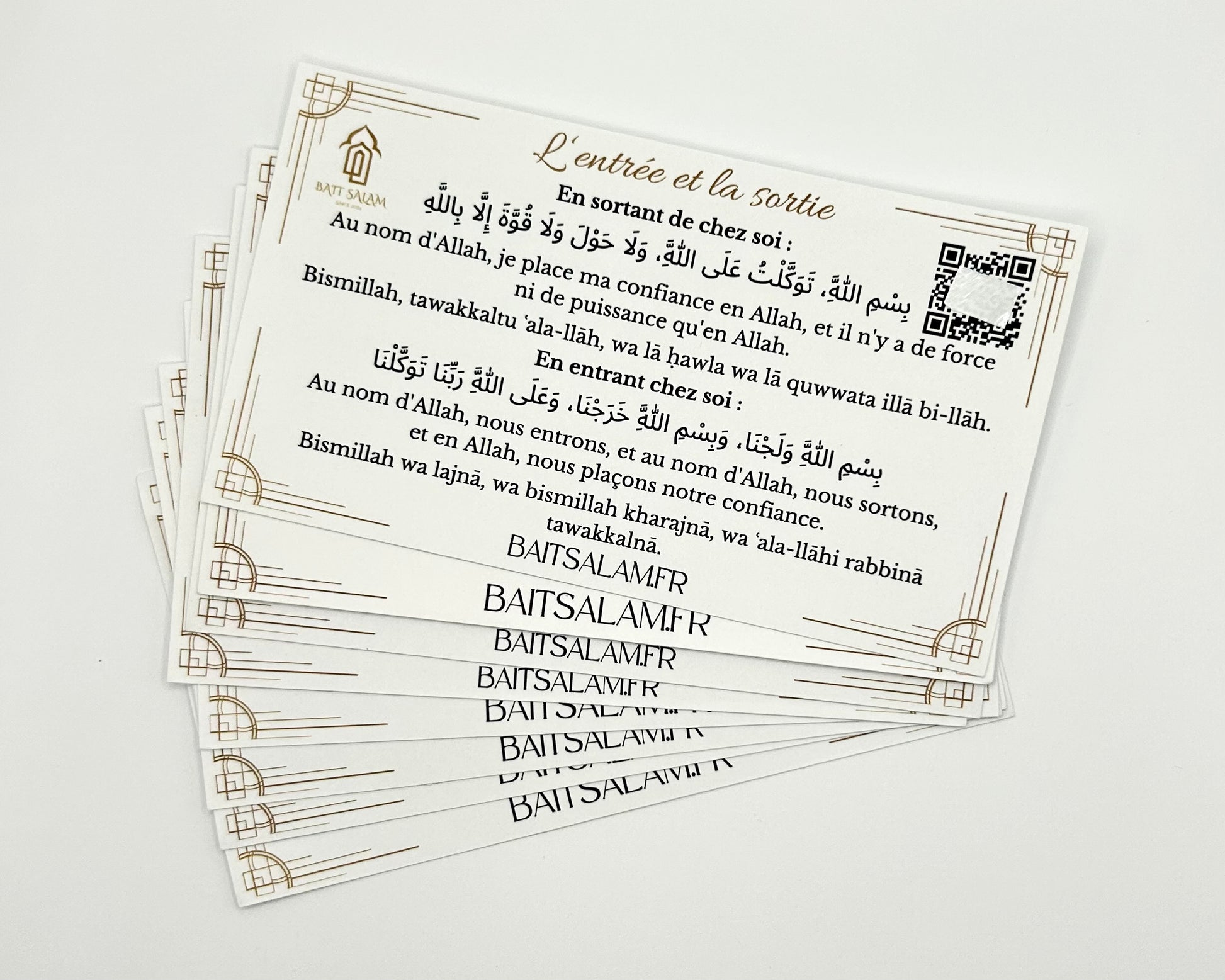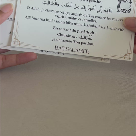 Découvrez nos stickers avec QR code intégré ! Chaque sticker affiche l’invocation en arabe avec sa transcription et, en scannant le QR code, vous accédez instantanément à sa prononciation audio. Idéal pour apprendre la prononciation de manière interactive !