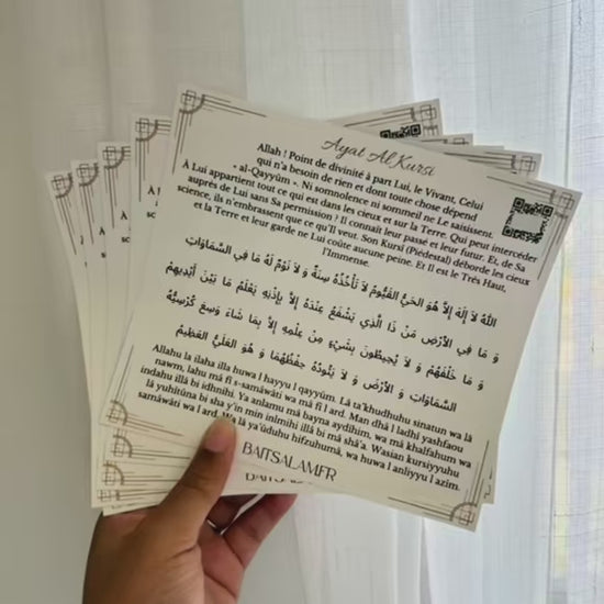 Facile à poser grâce à son adhésif puissant, cet autocollant transparent s'applique sur toutes surfaces lisses : murs, vitres, miroirs, meubles... L'Ayat al-Kursi (Sourate 2, verset 255) est un verset puissant de protection, rappelant la grandeur et la souveraineté d'Allah. Son design simple et coloré égaye discrètement votre intérieur.