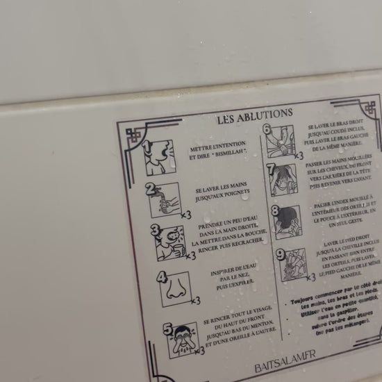 Apprenez et enseignez les ablutions (Wudu) de manière simple et visuelle grâce à ce sticker éducatif illustré. Conçu pour faciliter la mémorisation des 9 étapes essentielles du Wudu selon la tradition prophétique, ce sticker est parfait pour un enfant, un nouveau musulman ou toute personne souhaitant renforcer sa pratique religieuse.